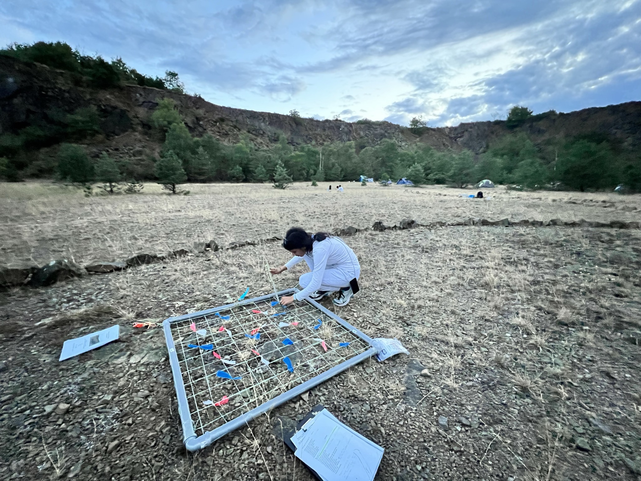 Fieldwork documentation at Schneeweiderhof, highlighting vegetation surveys and biodiversity assessment. This image represent the study of herbivory pressure on birch trees across woodland and quarry habitats, with a focus on how tree diversity shapes ecological interactions.