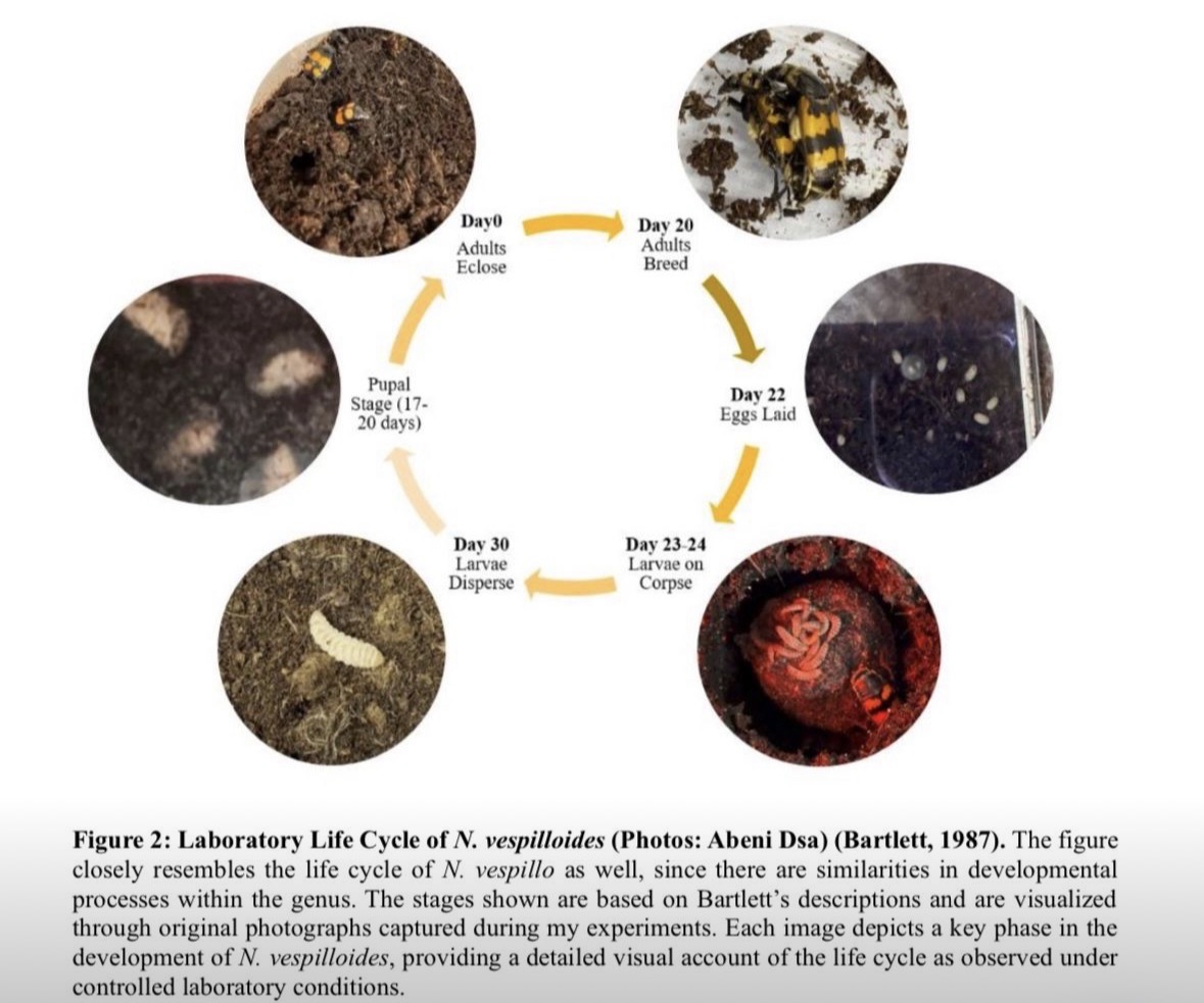 Field and laboratory documentation capturing the life cycle of burying beetles, including larvae feeding on mouse carcasses. These images reflect hands-on ecological research combining fieldwork, behavioral observation, and molecular techniques to uncover microbial adaptations linked to nutrition and reproduction.